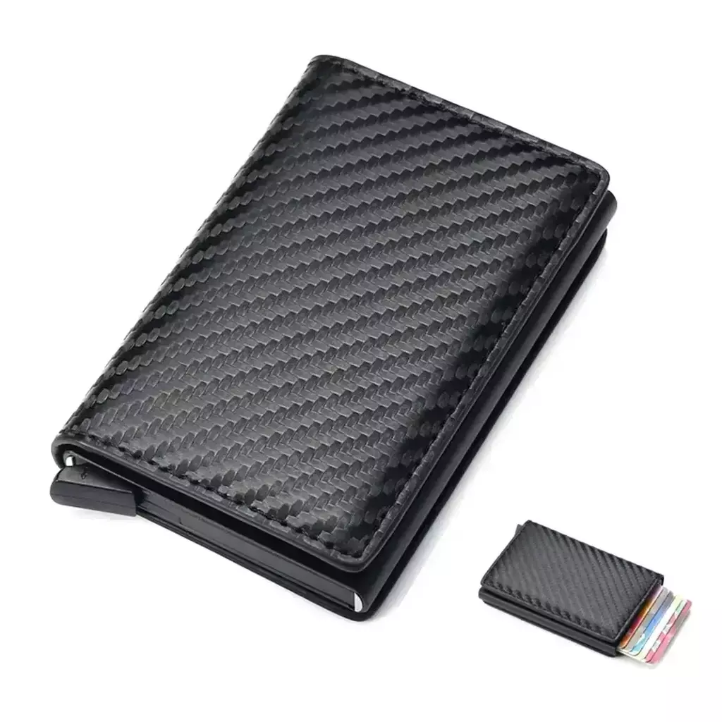 Leve, moderna e segura — a Carteira RFID de Alumínio Masculina em Fibra de Carbono é o acessório perfeito para quem busca estilo e proteção no dia a dia. Com design slim e minimalista, ela é feita com materiais premium que garantem resistência, leveza e durabilidade.